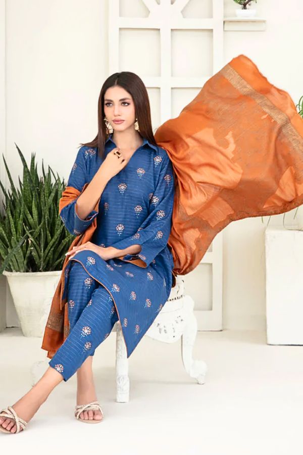3 Piece Ready-to-wear Collection By Tawakkal Fabrics, Attractive & Elegant Zari Khaddar Collection comes with: