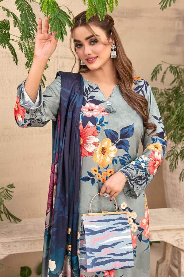3 Piece Stitched Collection By Tawakkal Fabrics, Attractive & Elegant Digital Printed Staple with Fancy HandBag Collection comes with: